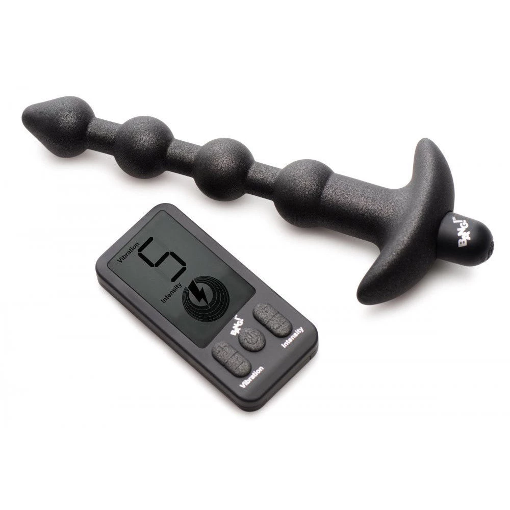 This silicone anal bead rope has a powerful vibrating bullet at the base that gives you power packed vibration! Enjoy 5 speeds and 5 patterns of backdoor rumble through each of the round, premium silicone beads. Completely body-safe and phthalate-free, these beads also have a tapered tip to make initial insertion easier. Control the beads with the battery-operated remote control. The LCD screen makes choosing your favorite settings easy! Recharge the bullet vibe using the USB cable provided. Use only with water-based lubricants. Wash with warm water and soap then spray with a toy cleaner and wipe dry.
