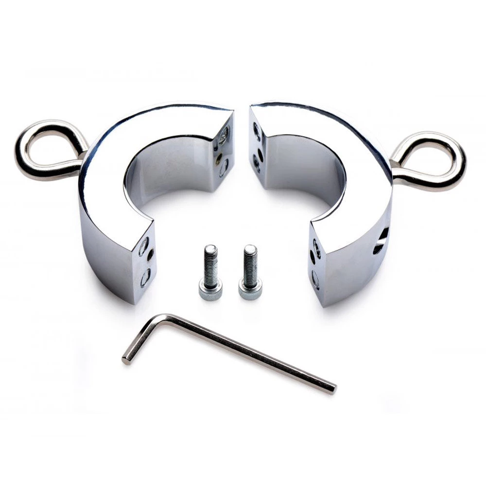 This Ball Trap comes equipped with two attachment points for adding extra accessories like chains, straps, or even extra weight to take your testicular play even further! Attach this ball stretcher to a set of ankle cuffs to force your plaything to his knees and enjoy his body to your heart’s content.