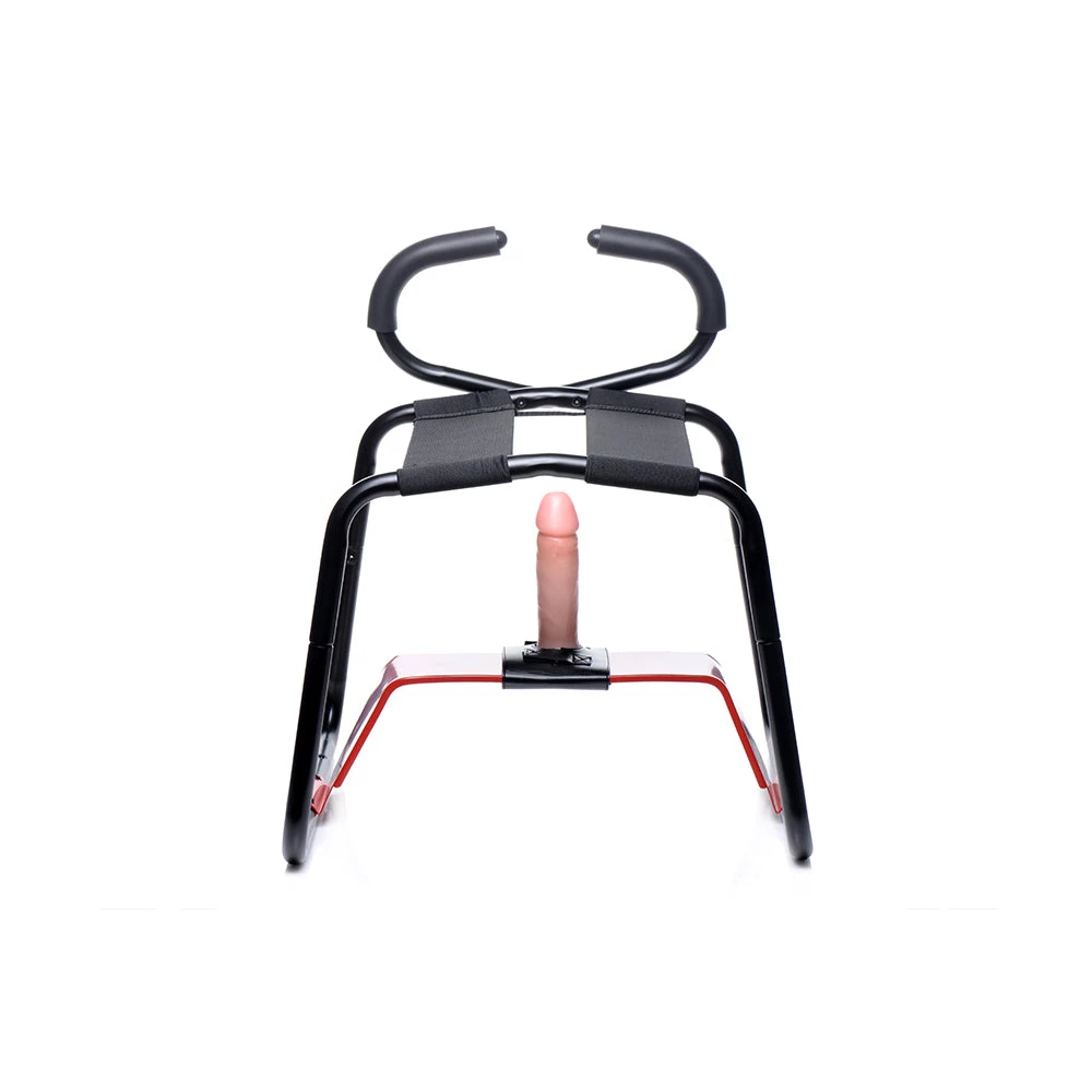 Home alone? Or want to put on a show? Strap your favorite dildo to the raiser bar using the strap-on harness and enjoy bouncing up and down until you cum! Want a partner to join? Have them slide their head below the bench and rest it on a pillow for added height. Lower your ass down and let them pleasure you. Or place the bench over their hips so you can lower down onto their cock while you grab the handles for support. Gain speed as your holes open up and you really get into the ride!