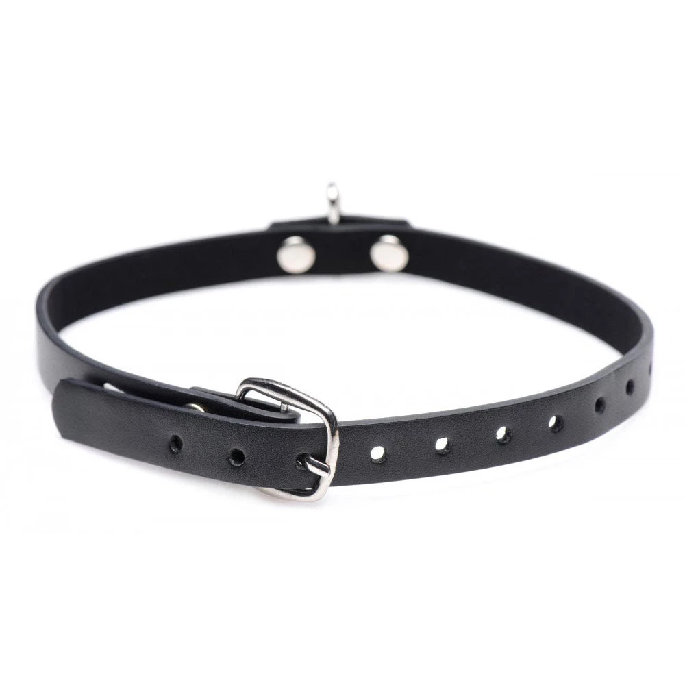 Soft and adjustable so your sub can focus on the scene and not on his collar! Keep it loose on his neck or get it snug and attach your choice of leashes, restraints, and ID tags on the silver O-ring found on the front of this skinny collar.