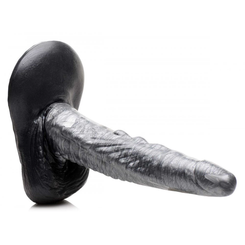 Reinvent your sex life with fantasy Creature Cocks! These dildos add the missing element to fantasy role play and up your game in kinky cosplay! The metallic gray and silver gargoyle cock has a black base with balls pulled tight, a long, lean shaft that has delicious bumps along the ridge, and a round, pointed tip. Enjoy the suction cup base that is perfect for solo sessions by pressing it firmly against a flat surface such as the wall, a table or the floor. Invite a partner to play and let them shove it inside you, or give them a strap-on harness so they can really play the part and thrust! Made of premium silicone, this dong is phthalate-free and body safe. Only use with water-based lubricants. To clean, wash with warm water and mild soap, then after rinsing, spray with a toy cleaner and wipe dry.