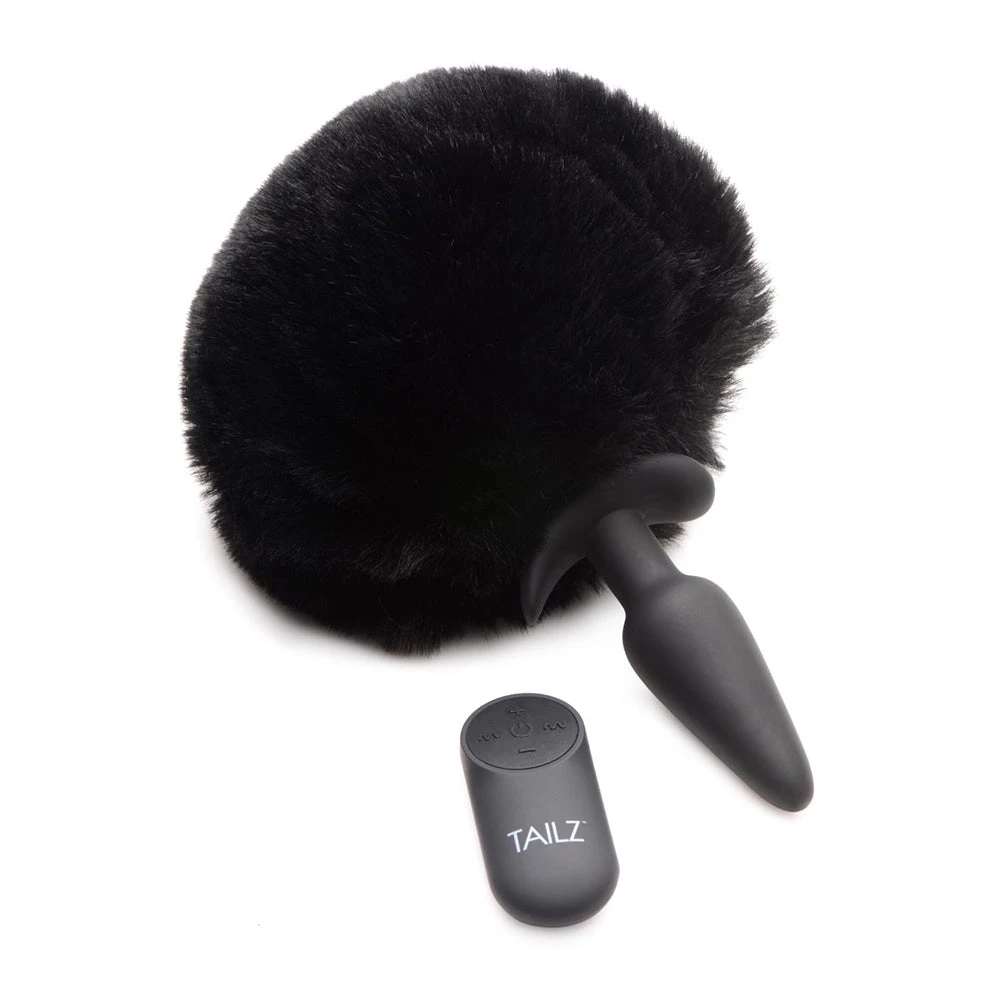 Embrace the dark side and show off your bad boy bunny tail! This black bunny tail adds a round, soft ball of fluff that attaches to any SnapOn Tailz butt plug. The bunny tail pairs with the plush, silky smooth butt plug and easily slips inside due to the tapered tip! Made with phthalate-free, premium silicone, it is body safe and ready to wear! Add an extra hop to your step with this backdoor buzz! This plug is packed with 3 speeds and 7 settings of vibration that you can control with a remote! Use it yourself or hand it to your partner for extra fun!