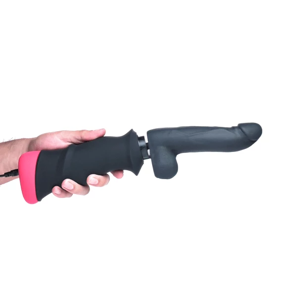 The dildo of this hand-held fucking machine is made of premium silicone for a body-safe and worry-free pounding. This material is non-porous and phthalate-free. Clean after use with mild soap or a toy cleaner. Avoid use with silicone lubricants.