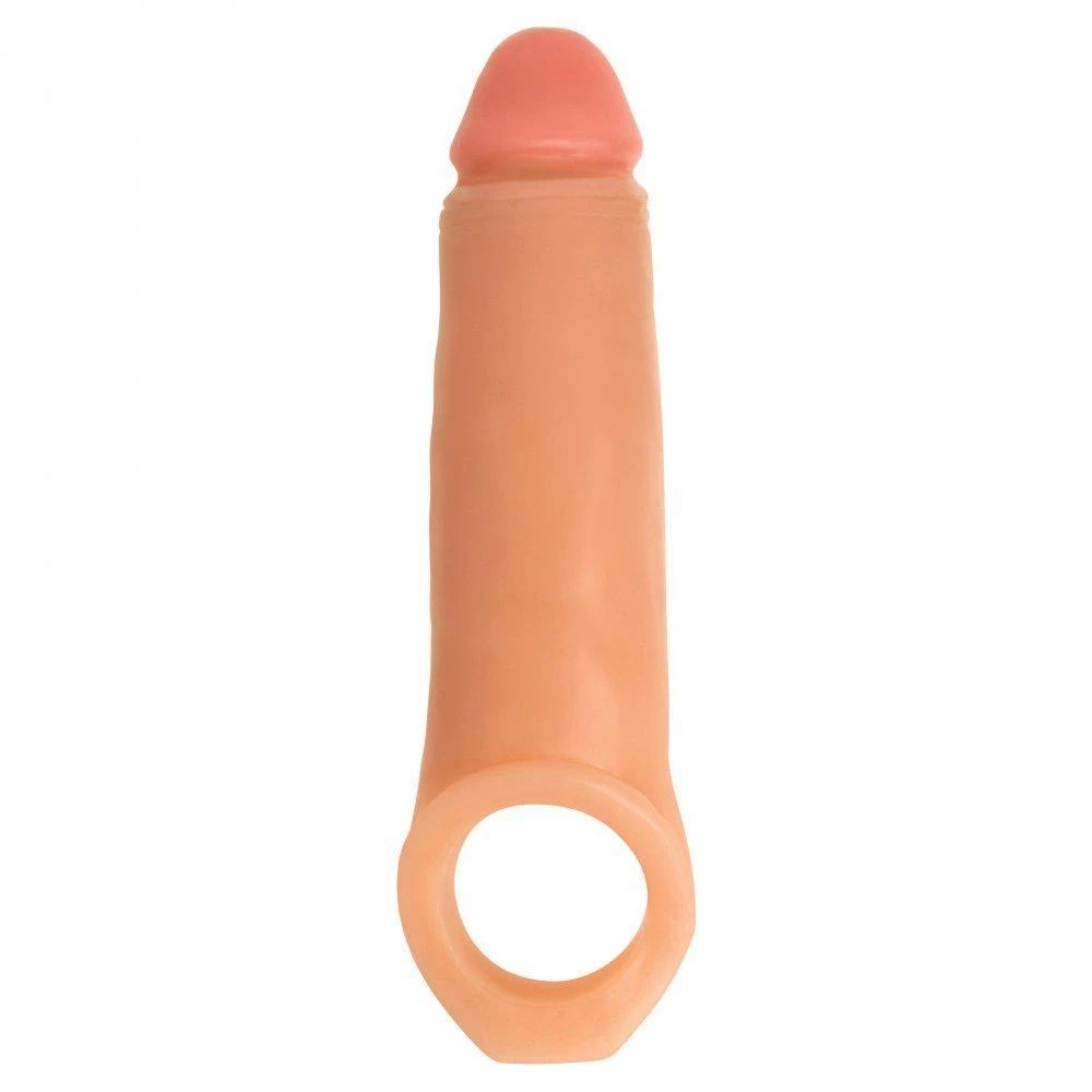 Experience the joy of extra length and girth with this slip-on erection enhancer. Made from enhanced PVC that is both latex-free and phthalate-free, you can be confident that you are using a quality and body-safe toy. A realistic cock heads adds 2 inches of length to your penis while the ball strap keeps the sheath in place and creates a desirable tugging sensation. The snug fit helps to maintain your erection and delay ejaculation. This firm, yet pliable pleasure tool can be used with silicone or water-based lubricants and cleans easily with mild soap or toy cleaner.