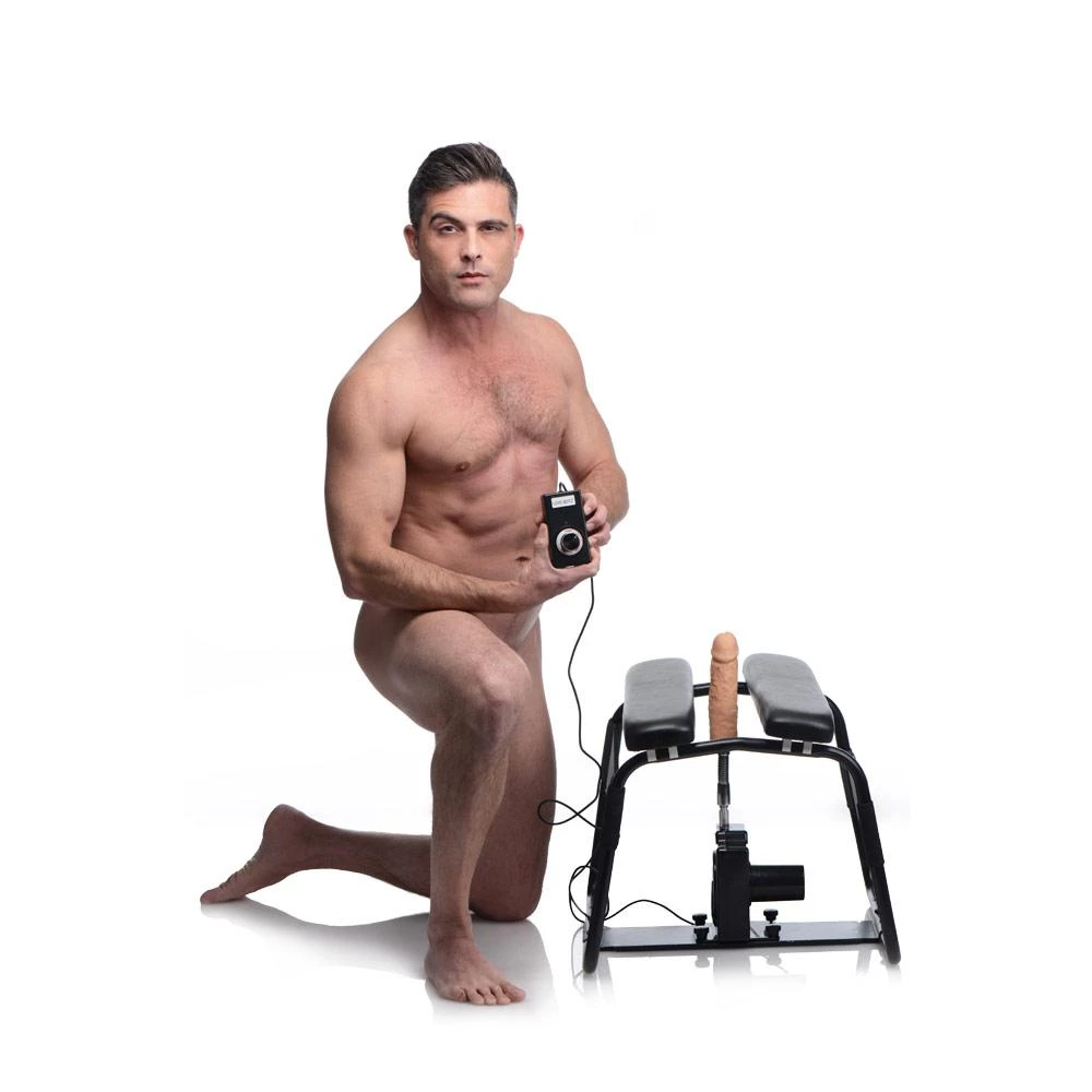 Take a seat and discover the versatility of this fuck stool and fucking machine!