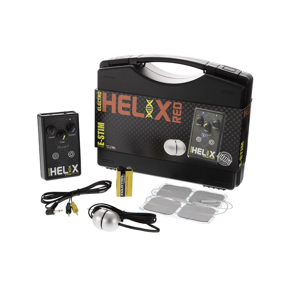 Perfect for all skill levels! The Helix Red Pack is a dedicated electroplay device made by experts as an introductory piece for beginners or a reliable, updated powerbox for experts. Featuring smooth, stepless controls for precise control, a super efficient power scheme for long lasting fun with a single PP3 battery, and even a “sport mode” for upping the intensity on demand, the Helix Red is perfect for every playstyle.