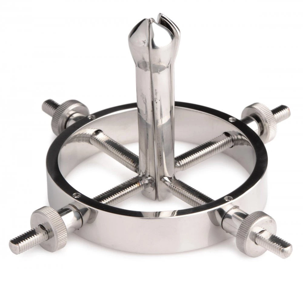 This medical style anal dilator is perfect for stretching that ass so you can get big dick or a lubed up fist inside! The steel is non-porous, compatible with all lube types and easily cleaned; it can be boiled or placed in a sanitizing solution after use so you can always rely on it being a safe toy! Each of the four, evenly spaced dilating rods can be expanded using the screws for a custom stretch. If you manage to get that ass open enough for a fist to go through the hole, you can slip your fingers and fist inside to give them an even more intense sensation!