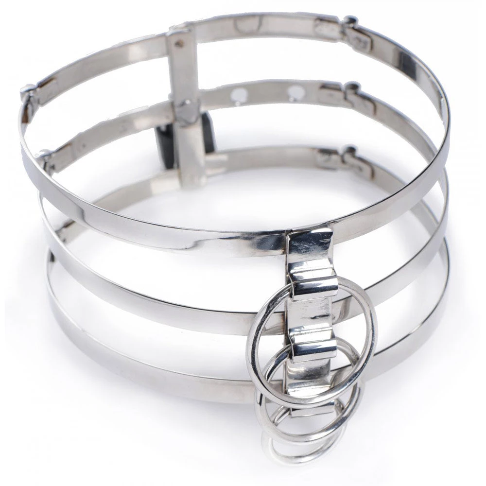 Cage your lover and experiment in bondage, submission, and power play with this Trinity Stainless Steel locking collar!