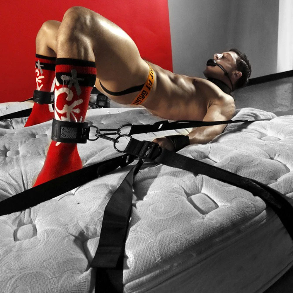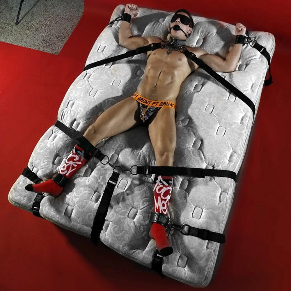 Choose from 14 different attachment points to tie down your man – explore and experiment with different poses and positions with this set of durable and reliable straps! Serving as an excellent foundation for you to flex your bondage creativity: spread your man open, lock him to his knees, or bend him over and secure him for merciless doggy style pounding.