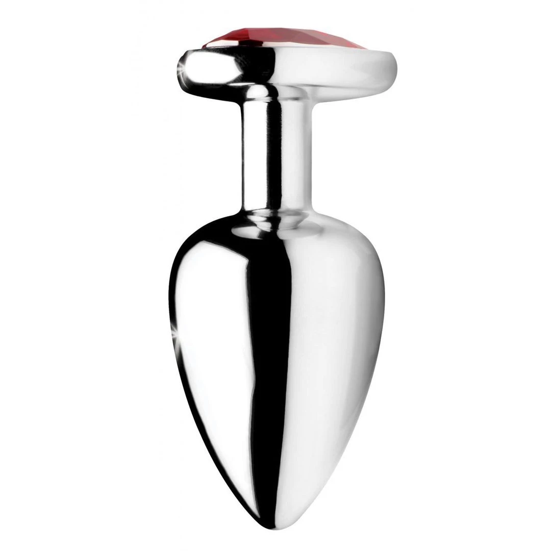 Show your man a little love when you bend over and spread those cheeks! This heart-adorned butt plug is available in 3 sizes so that everyone from beginners to size queens can make their booty sparkle. The sleek metal slides smoothly into your hole with a satisfying weight. The handsome red gem is practically hypnotizing as you give your lover boy a view he will never forget!