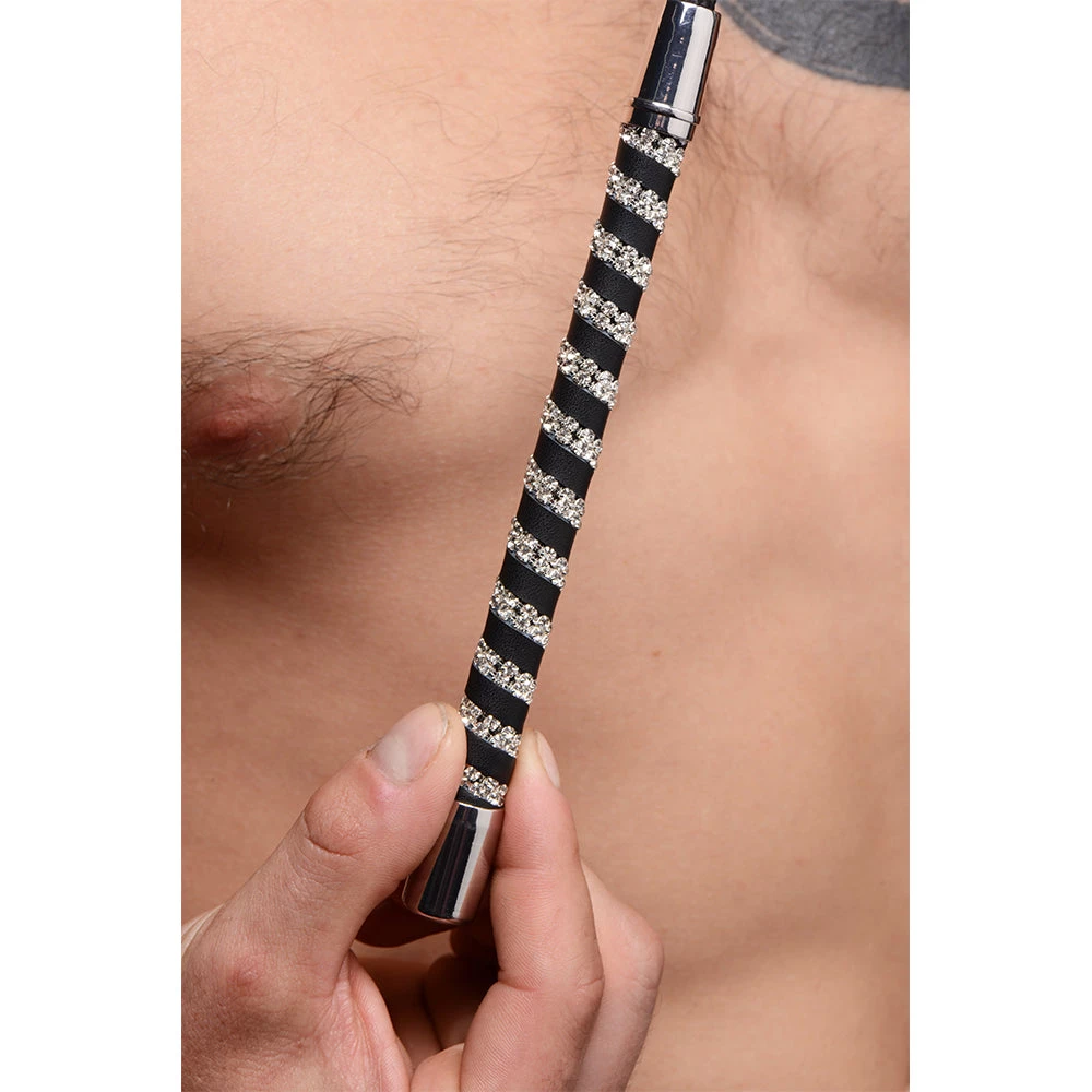 Ride your man and give his ass a good slap! This Rhinestone studded riding crop is a joy to hold and swing, with a genuine leather slapper for a titillating sound and impact – perfect for punishing your man for his bad behavior or disciplining a brat how they like it.