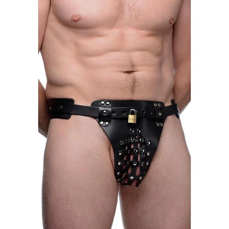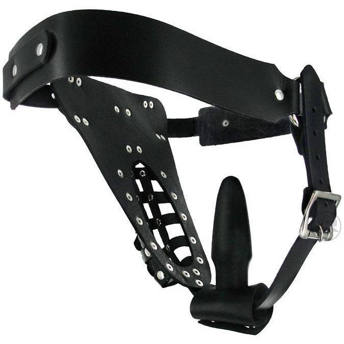 Image your cock straining against this leather cage, unable to get fully erect no matter how hot things are in front of you. At the same time you’ve got a butt plug strapped firmly into your ass, moving around in you as you move around. You’ll be begging your partner to unlock you and unleash the torrent of sexual energy that this harness has contained.