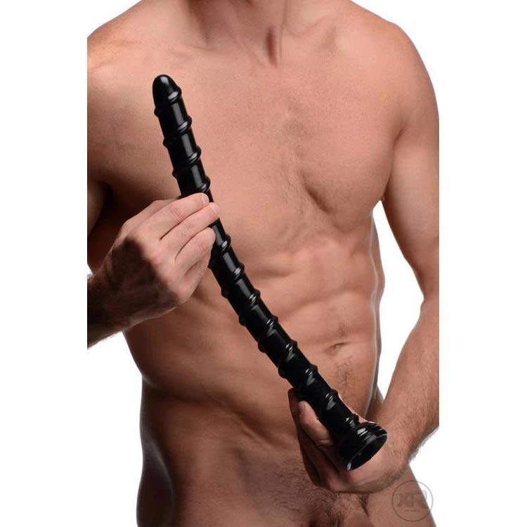 This monster cock will burrow past the point of no return and fill you to the brim! The flexible, yet still firm material allows it to snake into you, curving with your inner walls. The spiraled shaft will massage your anus as is goes deeper and deeper. How much can you handle? Suction down the base to your tub or another hard-smooth surface and explore the furthest depths of your ass!