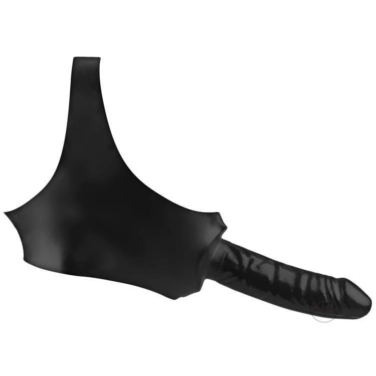 The stretchy latex mask will wrap tightly around his head, firmly positioning the cock over his mouth. Once it’s in place you can pull him in, content that your pleasureful penetration is getting his full attention.