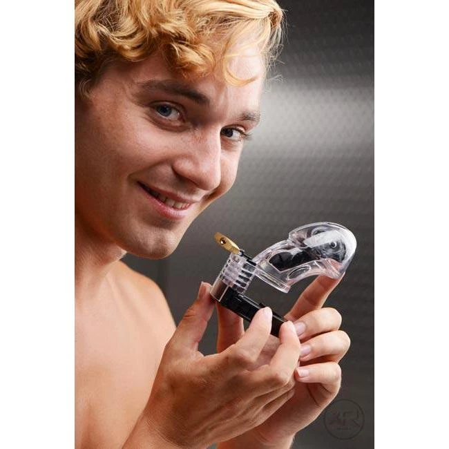 Even without the electrosex feature, the Electro Lockdown is a very secure chastity cage. It has multiple spacers and an adjustable cock ring to help you get the perfect fit. Once you’ve got it, you can securely lock your cock in with the included padlock. If that weren’t enough you can plug the included TENS leads into the conductive silicone inserts, and run a pleasurable current through your cock. Some guys achieve hands-free orgasms through electrostimulation, but this cage will keep you from achieving an erection. Despite the waves of pleasurable electricity, your cock will be confined to the walls of its prison.