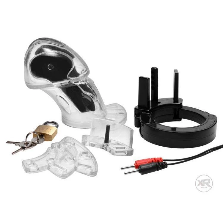 Subject your caged and restrained cock to intensely pleasurable electrostimulation!