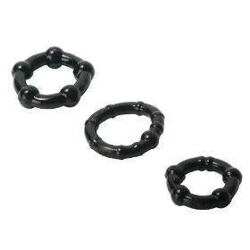 The rings are made of stretchable rubber that are placed around the cock and balls. They regulate the bloodflow leaving the penis, thereby causing the erection to last longer. Each of the three distinct designs give a visual appeal for you and your partner. You’ll receive three (3) cock rings in each set. Because the rubber is highly stretchable each of these rings will fit comfortably around the cock and balls.