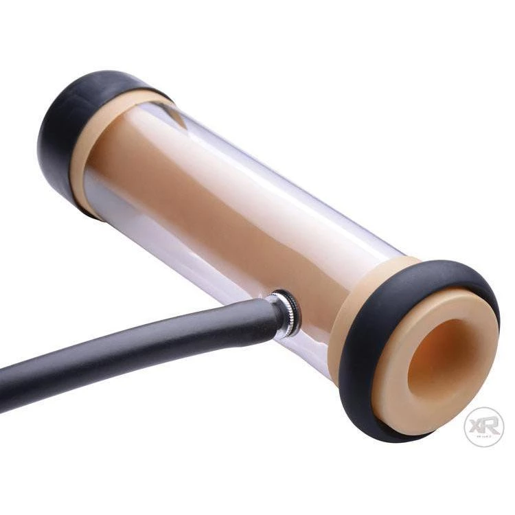 The Milker isn’t just a pump or a stroker. It literally sucks your cock by pressurizing and depressurizing the tube around the rubber sleeve. As it sucks you’ll feel the rubber pull at your cock, actually sucking it in, like cheeks sucked tight around your shaft. You can get some cock head action from the short cylinder or get full deep throat action from the 9 inch cylinder.