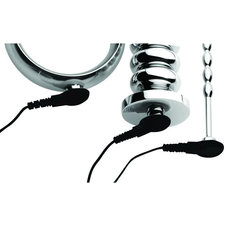 Send power coursing through your body with a kit that will satisfy your craving for E-stim! Three accessories allow you to send shocks of ecstasy into your pisshole, package, and ass! Hook up your powerbox to two of the three pleasure tools to create the bipolar current that will jolt your body with electrical stimulation. The included leads connect easily to the stainless steel cock ring, beaded urethral sound, and rippled butt plug. Your Zeus Power Box will allow you to control the strength of the volts, from light tickling to powerful spasms!