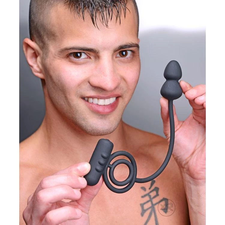The ultimate couples toy, the Voyager 1 delves into your asshole, while making your cock harder and more sensitive. One ring wraps around your entire package, while the other encircles your dick. Your man will get a long, hard pounding while getting his perineum and balls tickled by the vibrator attached to this device! The two bulbs of the anal beadlet are shaped to stimulate as they move inside of you.