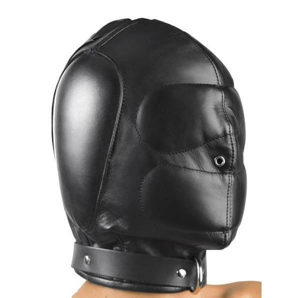 This padded leather hood takes control a step further by more effectively depriving the wearer of his senses. It can be locked on, and a D-ring on the front allows you to hook up a leash. With only his sense of touch available, the wearer is at his partner’s mercy. Of course, with some senses blocked out, those remaining senses are so much more alert.