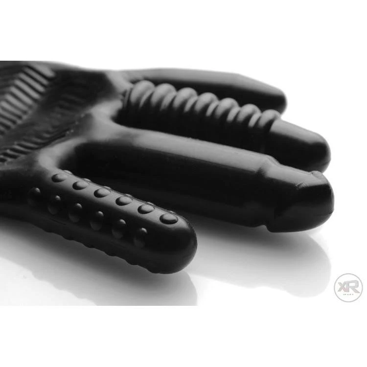 Slip this glove on for an enhanced hands-on experience, on your own or with a partner! The bold textures provide exciting new sensations as you stroke your cock or his cock. However, each of the fingers is also shaped for penetrative pleasure! During foreplay this glove makes an interesting addition to a massage or a spanking session. Explore different ways to stimulate with zig-zags, nubs, bulb, and more!