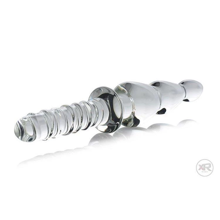 On one side: a narrow dildo with a swirled ridge that will spiral up your anus. On the other: smooth anal beads that gradually become larger. You always have two unique and luxurious sensations to choose from! Best of all, this double-ended pleasure tool made of sleek, weighty glass that creates a greater sense of fullness. Experiment with temperature play by prepping the Saber in hot or cold water.