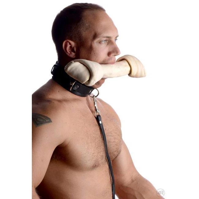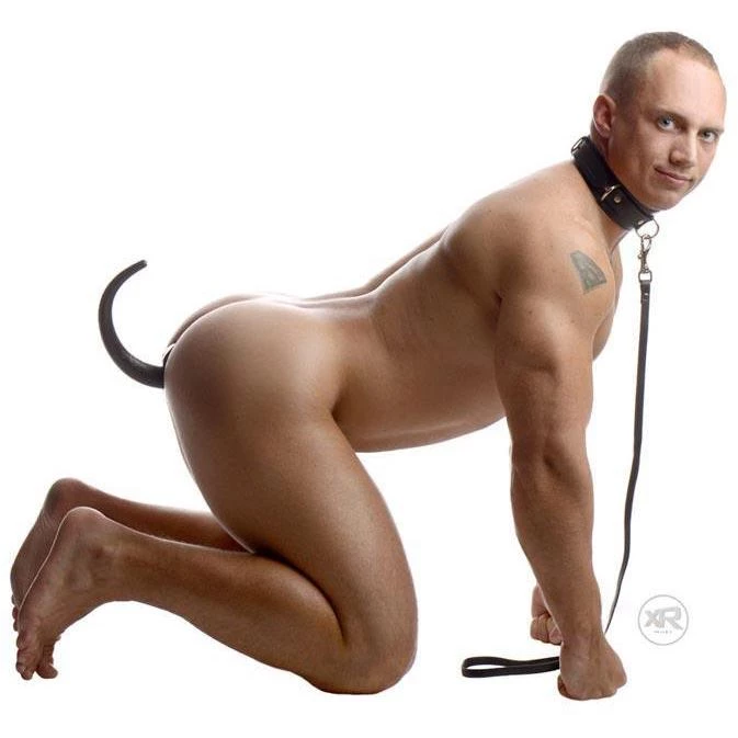 Lock your partner into his puppy role with this lock collar and leather leash set.