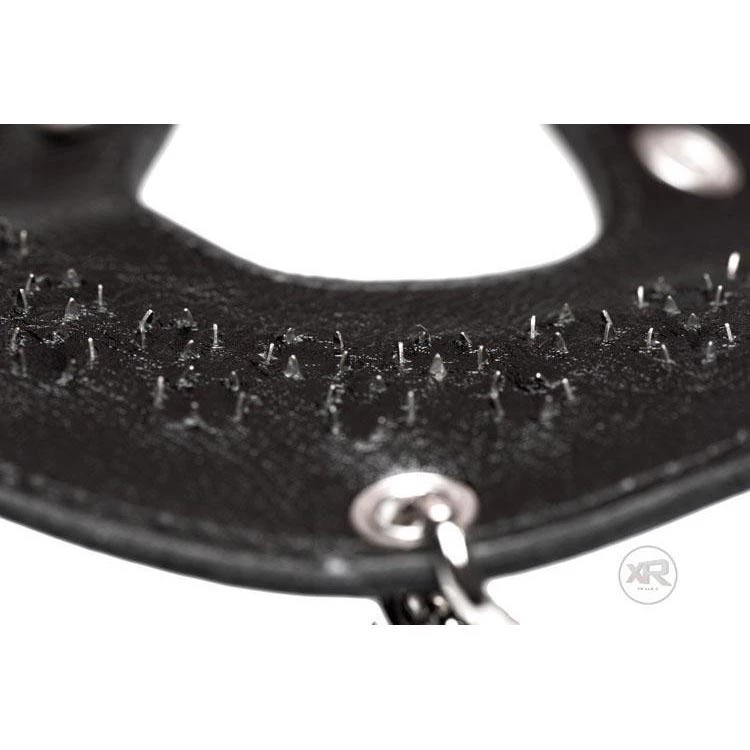 Are you into intense CBT play? Then this is the item for you! Our spiked ball is made of quality black leather and has over 100 small metal spikes. These tiny spikes should not pierce the skin of the user unless it is squeezed or compressed. Designed to subject the user with discomfort, you can add to their discomfort by adding cock and ball weights to the attached steel O-ring. Yet, this can be very dangerous and user should only do so at their own risk. Weights not included