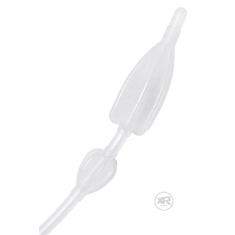 The Double Balloon Enema Nozzle is designed to help you and your partner discover the joys and sensations of enema play. With it, you can fill up like never before. The nozzle is inserted along with one of the balloons. Both balloons are then inflated creating both an internal and external seal. Once the seal is created, you can introduce large quantities of liquid into the rectum.