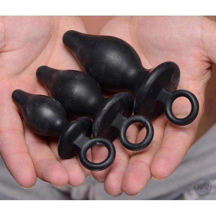 The Trinity Silicone Anal Set is 3 plugs that gradually increase in size. Enjoy taking your partner through the joys of anal sex. Each plug has a handy O-ring at the end for easy insertion and removal. You get 3 plugs with each set: Small (2″ insertable length, 1″ in diameter), Medium (2.5″ insertable length, 1.25″ in diameter) and Large (3.25″ insertable length 1.5″ in diameter).