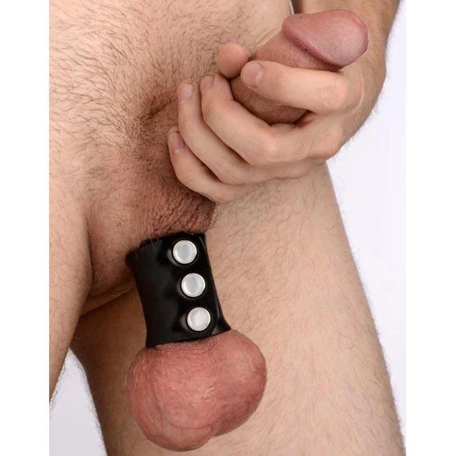 A lot of men enjoy a gentle or firm tugging on their balls. That feeling can make you more aware of them during the day, or add to the sensations while your cock is being stimulated. The Vault is a great choice if that’s what you’re looking for. It snaps on easily, and holds your balls comfortably. Using it in water or with water-based lubes is no problem. It even has two sets of snaps so you can get it to your preferred tightness.
